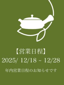 12月26日(金):店舗営業(ご提供はお茶のみ)