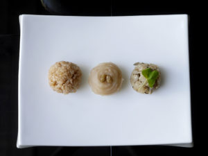 (舞茸のおこわ・ほうじ茶で炊いたもち米と塩あんこ・ほうじ茶漬けレーズンとほうじ茶あん)