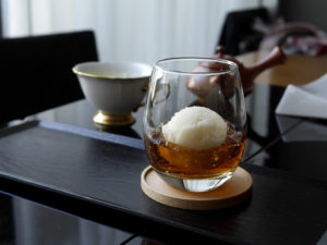 ・煎茶「咲耶」と洋梨のソルベ 紅香青空烏龍のジュレを添えて